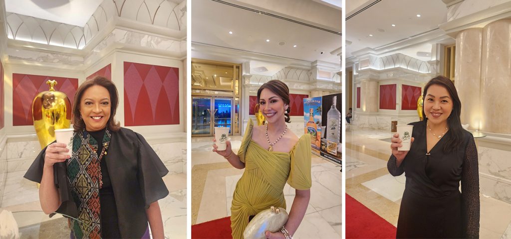 Chroma Hospitality Vice President for Sales and Marketing Ms. Carmela Hidalgo Bocanegra, Ms. Jenny Santillan, Dir. Sales and Marketing of City of Dreams Manila, and Luxent Hotel General Manager Ms. Melanie Sy-Pagkalinawan Savoring every sip of Manille cocktails served by the Destileria Limtuaco mobile bar.